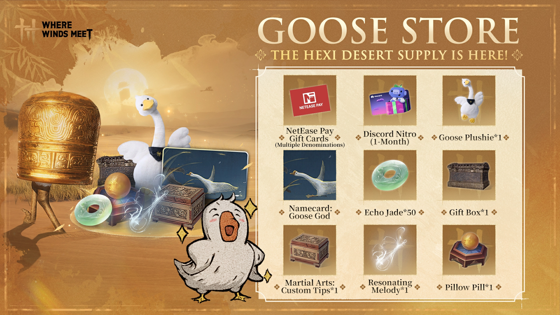 · 🎮 In-game items: Exclusive "Goose God" Namecard, Echo Jade, Gift Boxes & more